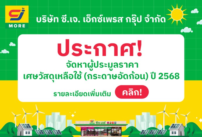 บริษัท ซี.เจ. เอ็กซ์เพรส กรุ๊ป จำกัด มีความประสงค์ที่จะจัดหาผู้ซื้อเศษวัสดุเหลือใช้(กระดาษอัดก้อน) โดยมีหลักเกณฑ์และรายละเอียดการยื่นซองประมูลราคาดังต่อไปนี้